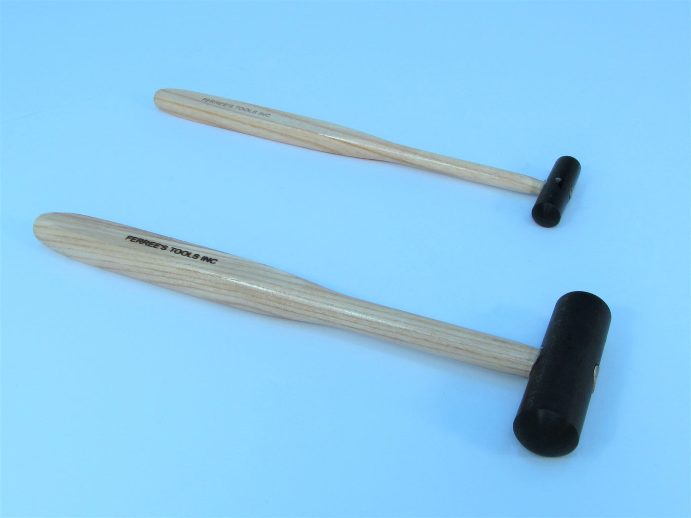 Great hammers for dent work when you want a non-marring surface that will not work harden the material you are working on.  Can be used to tap on steel mandrels or dent balls without leaving hammer rash/ walnut shell dimples. Great for general purpose tapping of all types.  Sold in two sizes.  One end is round and the other end has a slight radius.   A must have in your toolbox.