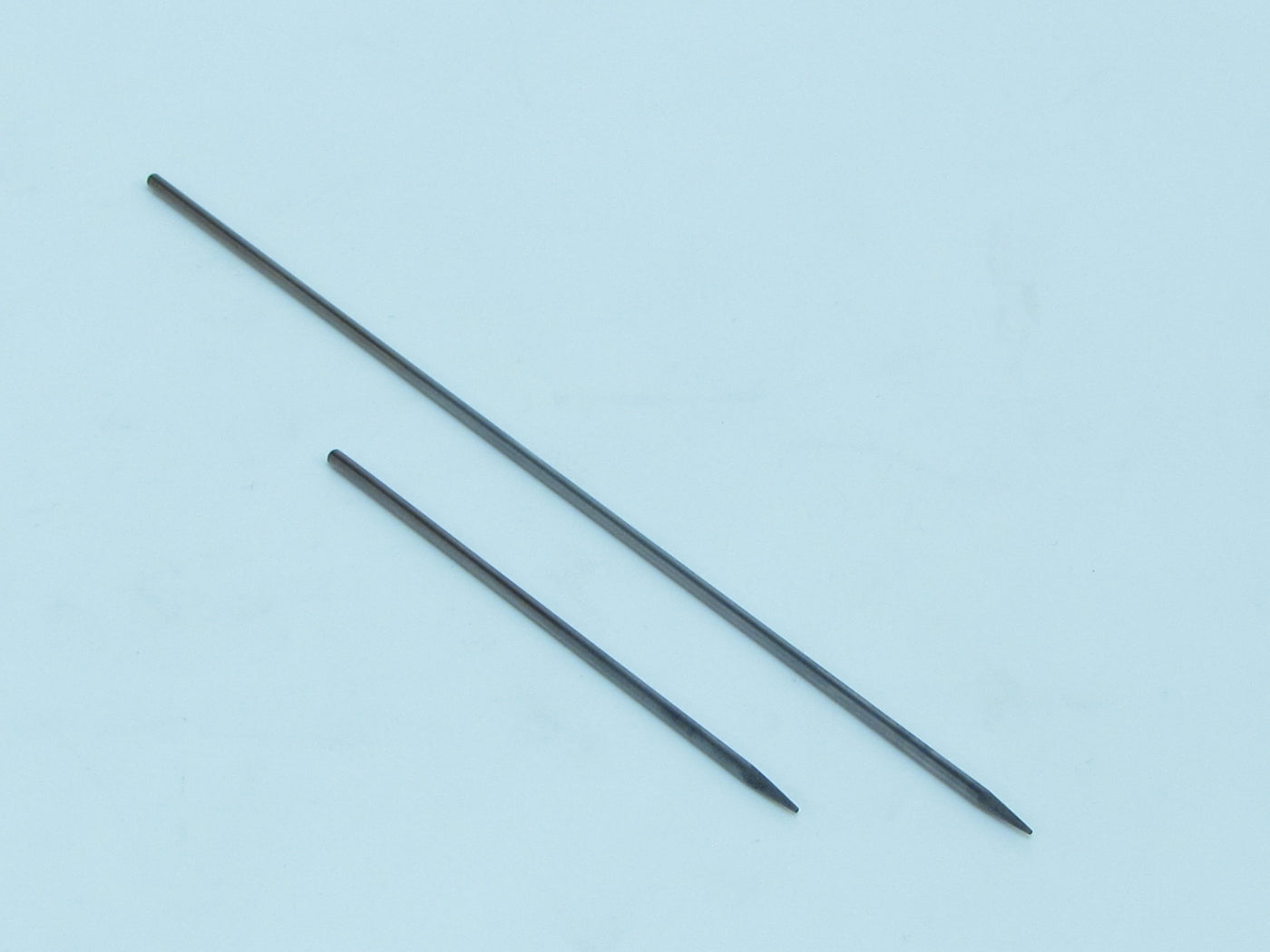 A set of two spring punches used to drive out broken needle springs that you are unable to remove with the E4 Spring Removing Pliers. Remove the post from the clarinet and lay it on an L24 Lead Block. Use a F5 Rawhide Mallet to stick the post into the lead, then use the punch to drive the spring into the lead.